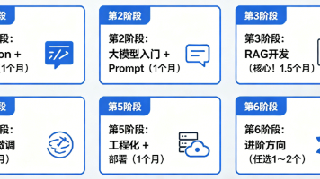 本文针对大模型学习中的常见误区,提出了一套系统化的5步学习路线,帮助学习者高效掌握企业所需的核心技能。路线包括:基础能力培养(4周)、关键技术突破(6周)、企业级项目实战(5周)、就业能力冲刺(4周)和综合项目准备(3周),强调从理论到实践的完整过渡。文章指出大模型领域存在巨大人才缺口,2025年前10个月AI岗位需求增长543%,高薪岗位多集中于AI研发方向。同时提供了包含视频教程、学习路线、技