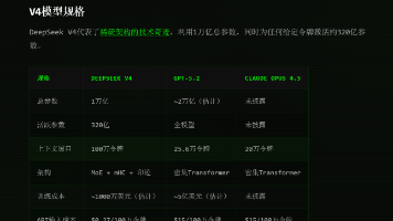 DeepSeek V4重磅开源,推出Pro/Flash双版本,支持100万token上下文,并兼容NVIDIA与华为Ascend双算力平台。Pro版49B参数定位高性能,Flash版13B参数主打性价比,均具备强大的推理、Agent和知识处理能力。技术亮点包括CSA/HCA混合注意力机制实现高效长文本处理、Engram记忆模块优化知识检索、mHC流形约束提升训练稳定性。该模型支持OpenAI格式A