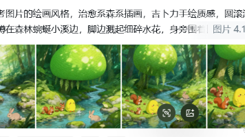 最近比较火的,AI 森林治愈系的画风,一个充满自然气息的森林场景,主体对象是一只可爱的卡通小生物,它有着圆滚滚的身体和两个小红点,看起来非常可爱。本节介绍如何使用豆包即梦也快速实现这种AI森林治愈系风格视频。
