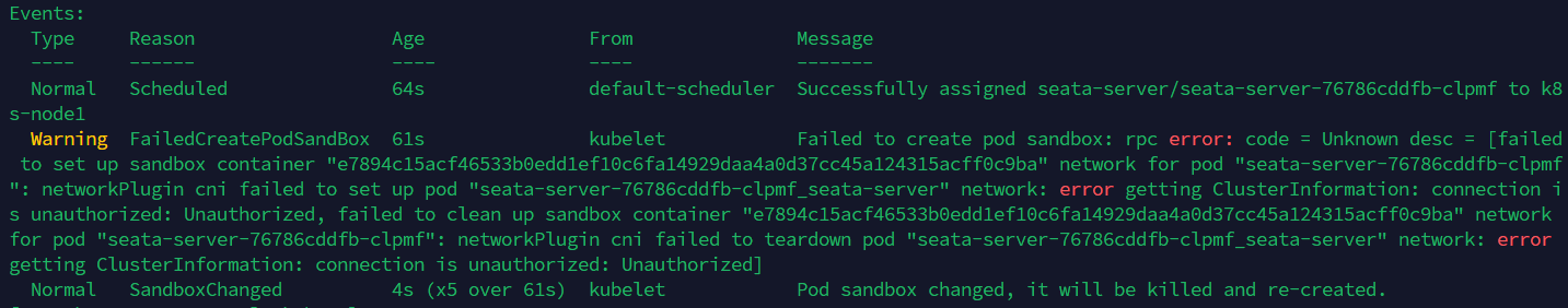 如图,当服务器重启之后,常常创建 pod就会报这样的错误。重启一下网络插件就可以了。