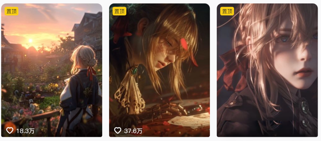 UP主应该是用Midiourney垫图角色一致性抽卡出的图,效果好,但是Midiourney有一定的使用门槛,所以我们使用Stable Diffusion出图,因为角色方面模型已经炼制好了,所以我们可以直接用提示词完成薇尔莉特角色及场景的绘制