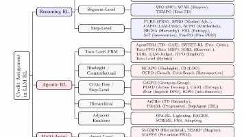 摘要: 随着大语言模型(LLM)与强化学习(RL)深度融合,信用分配问题成为关键挑战。早期LLM-RL(如RLHF、DPO)采用粗放的整段奖励分配,适用于短文本任务。而推理型RL(如数学推理、代码生成)需将终端二元奖励精准分配至长轨迹的每一步,解决“哪一步决定最终结果”的问题。更复杂的Agent RL(如多轮交互任务)进一步升级难度,需在多轮随机环境中定位关键决策点,处理稀疏延迟奖励。信用分配机制