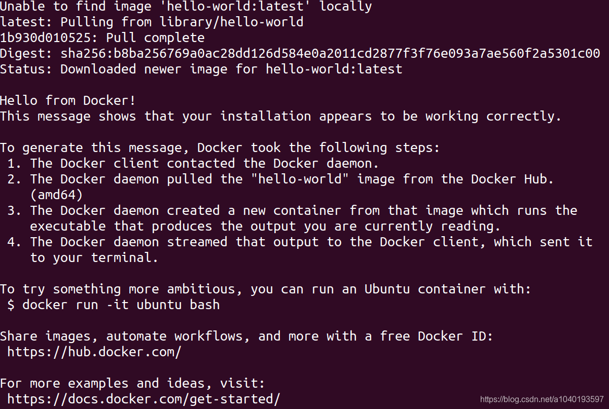 3.2 再运行sudo docker run hello-world,看到这个说明你的docker安装和运行都OK了。
