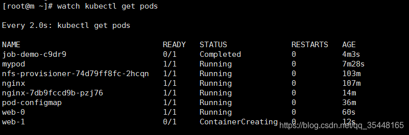 观察下集群pod的创建顺序,这里的Pod是顺序创建的,和RS里的并行创建不一样