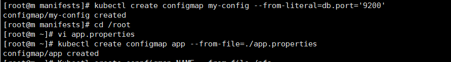 Kubectl create connfigmap NAME --from-literal=key1=value1 --from-literal=key2=value2