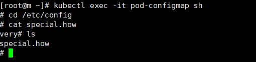 可以将创建的ConfigMap直接挂载至Pod的对应目录下,其中每一个key-value键值对都会生成一个文件,key为文件名,value为内容。