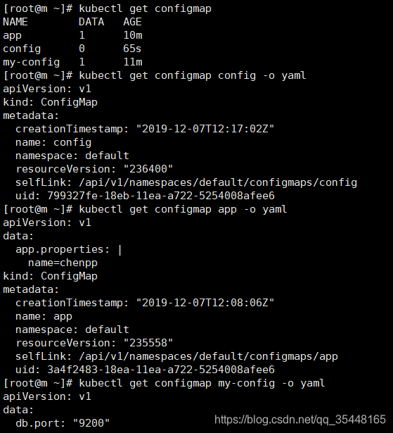 可以通过kubectl get configmap my-config -o yaml命令查看创建的my-config configMap的详细信息