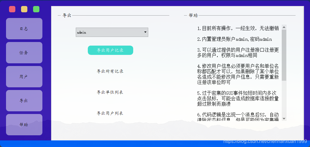带账号登录,数据库校验,数据库操作,数据Excel导出。联网rpyc模块是独立的,不放进来。