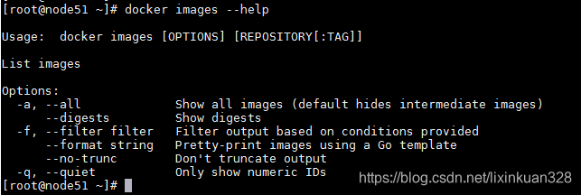 -a --all=false 显示所有镜像,默认不显示中间层的镜像。