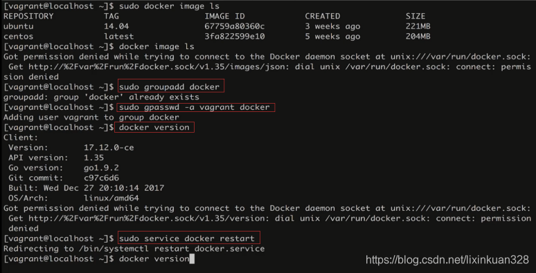 - 将vagrant 用户 添加到 docker 用户组内:sudo gpasswd -a vagrant docker