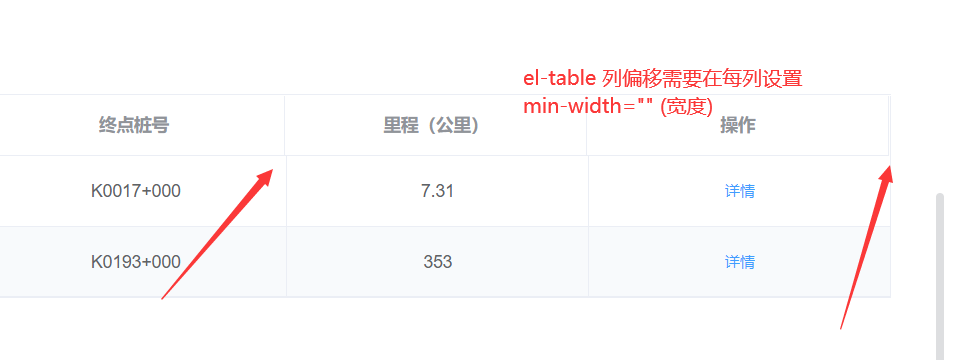但之后发现有时候使用了该属性还会出现偏移问题,又又 经过测试,发现动态调节 :min-width 的数值,可以解决这个问题,确实有效,但是这个数值比例没研究出来,只能是所有列动态增减玄学调整,根据偏移的尺度来找感觉.....