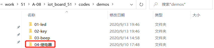将上一节工程复制出来,并修改名字为04-继电器