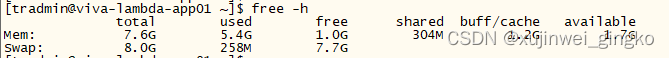free -h 内存使用情况,下图内存总共8G,使用了5.4G