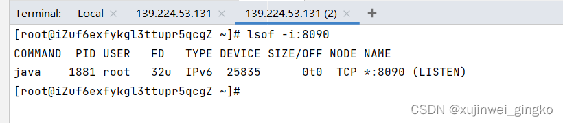 lsof -i:端口号,例如:8090端口被java程序占用