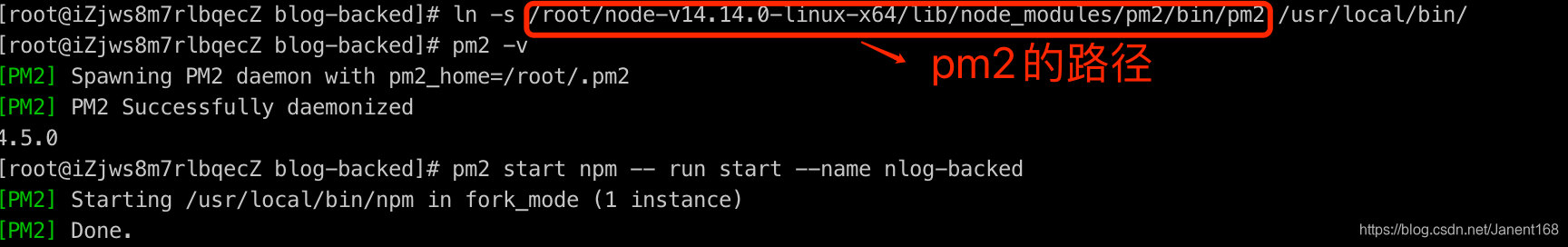 安装pm2后执行[root@iZjws8m7rlbqecZ blog-backed]# pm2 -v-bash: pm2: 未找到命令修改路径ln -s /root/node-v14.14.0-linux-x64/lib/node_modules/pm2/bin/pm2 /usr/local/bin/如果显示文件已经存在,用mv删除之后再执行上一步mv /usr/local/bin/pm2 /tm
