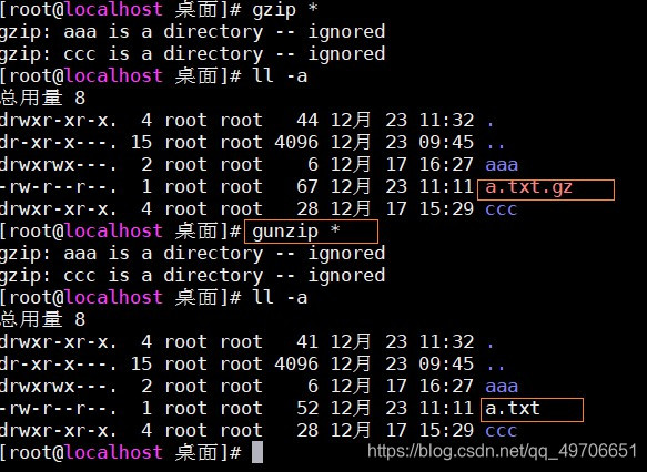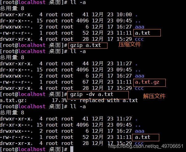 gzip命令——gzip 文件名:压缩文件(缺点: 只能打包压缩单个文件)