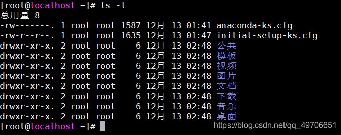 ls -l显示不隐藏的文件和文件夹的详细信息
