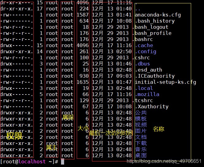ls -al(或者ll -a)显示所有文件与文件夹的详细信息