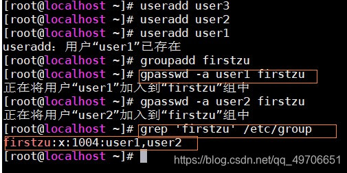 将用户添加到用户组中: gpasswd (选项) 用户名 组名——gpasswd -a user1 firstzu