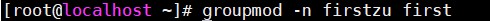 修改用户组:groupmod (选项) 新用户组名 用户组名——groupmod -n firstzu first