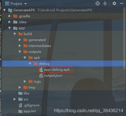 把当前项目切换成Project,然后找到build文件夹。只要你的项目运行了,就会生成这个文件夹,然后你可以通过下图