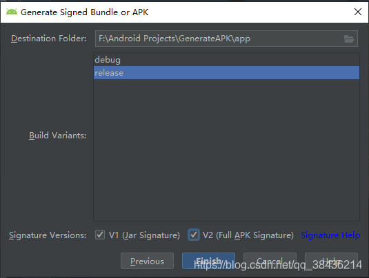 选择release,下面两个都勾选上,然后点击Finish。