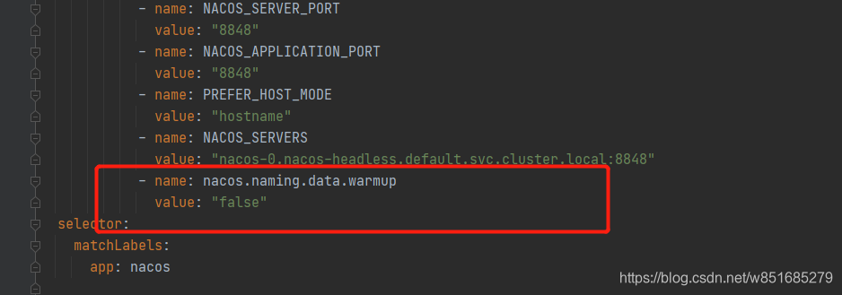 错误 :/nacos/v1/ns/instance 503server is DOWN now, please try again later!原因 :nacos.naming.data.warmup=true时,如果只部署一个节点,导致不可用,设置为false 即可