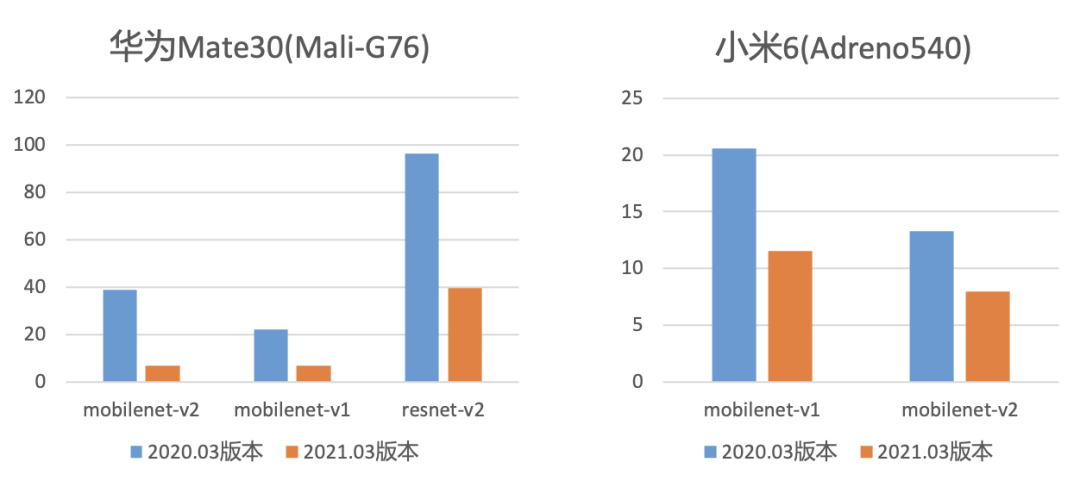 MNN自开源以来,一直以高性能、通用性、易用性等特性闻名于业界。近一年来,MNN GPU再发力,OpenCL后端针对移动端(Adreno/Mali GPU)、PC端性能总体提升超过100%,部分机型性能翻几番。请看下图:
