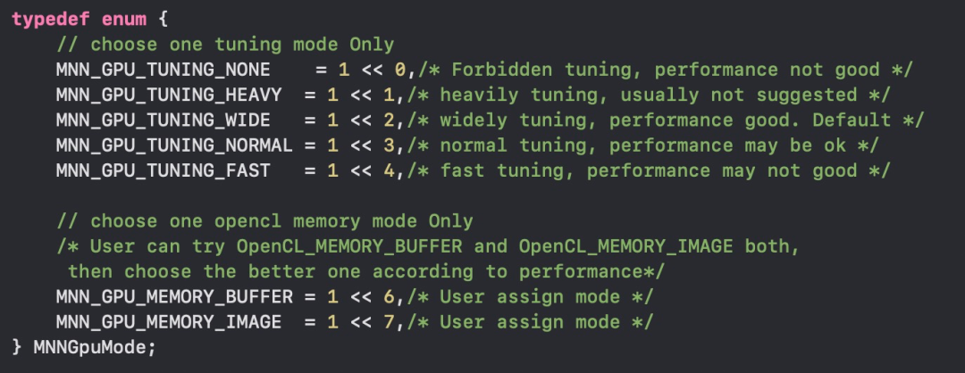 MNN OpenCL提供用户可自行配置的MNNGpuMode,具体选项如下图所示。