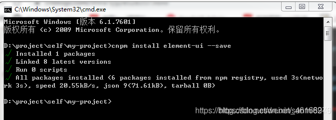 vue导入Element-ui框架1.安装命令:cnpm install element-ui --save1出现上图说明安装成功2.在main.js中引入js和cssimport ElementUI from 'element-ui';1import 'element-ui/lib/theme-chalk/index.css'13.让vue引用Element uiVue.use(ElementU