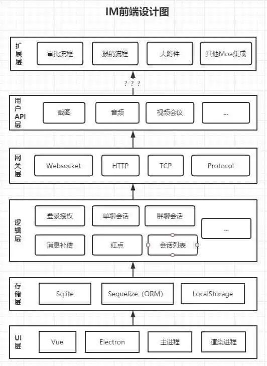 这张图第一个问题是不够完整,他只有一条主链路,对于IM这样的复杂技术产品,主链路只是冰山一角,如果真的只做了主链路,那么代表思考不够,早晚会出现线上故障。