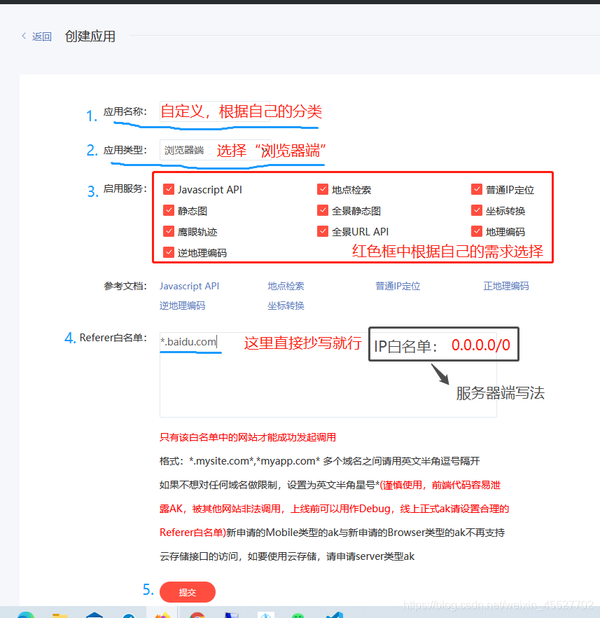 蓝色框:代表我们创建的应用是“浏览器端”,一般选择“浏览器端”就可以了
