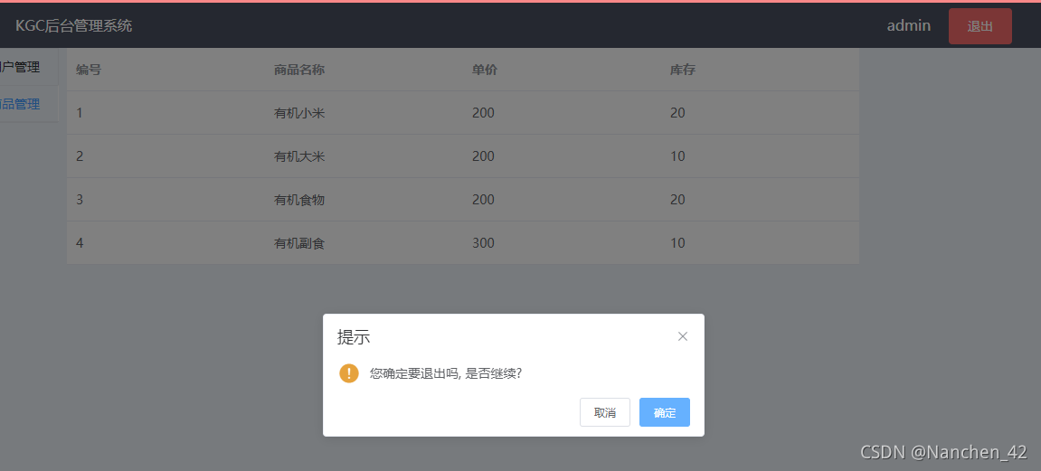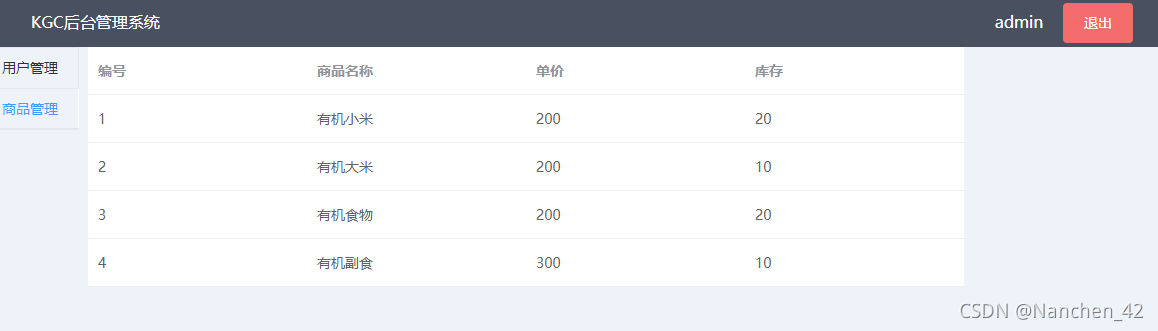 <el-table-column prop="name" label="商品名称"> </el-table-column>