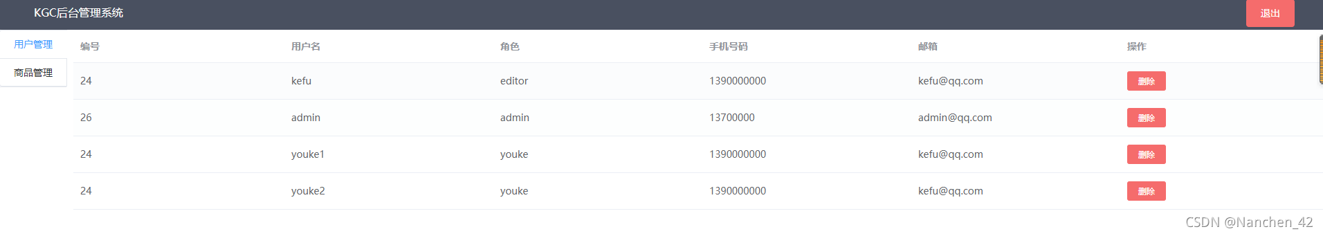 <el-table-column prop="email" label="邮箱"> </el-table-column>