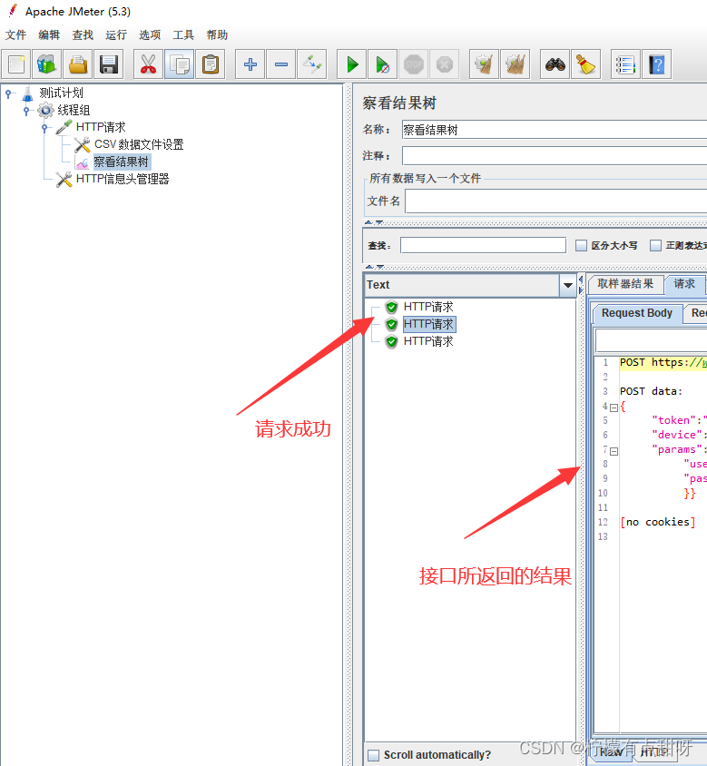 8、点击开始按钮 就开始跑啦, 按照之前方法看结果哦,看接口数据就不教了吧。