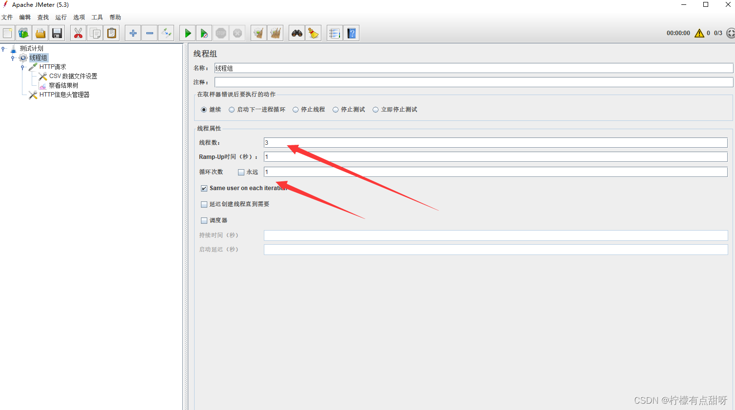 7、接下来就是设置线程组的线程数了,这里 线程数=x个用户账号密码