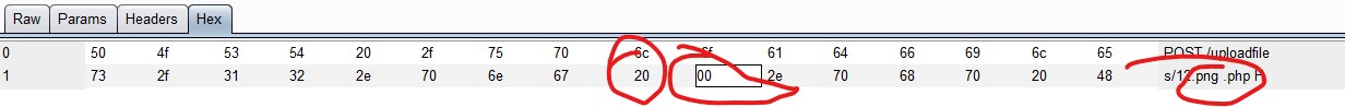再次抓取数据包,需要在数据包中请求,跟上图片地址,再把png后的两个空格替换成【0x20】[0x00]