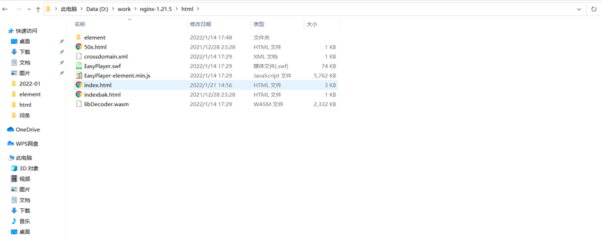 1)首先,播放H.265的视频流需要libDecoder.wasm文件,该文件只能在Nginx服务下才可以使用。所以我们需要先在网上下载一个Nginx服务(这里以nginx-1.21.5为例)。