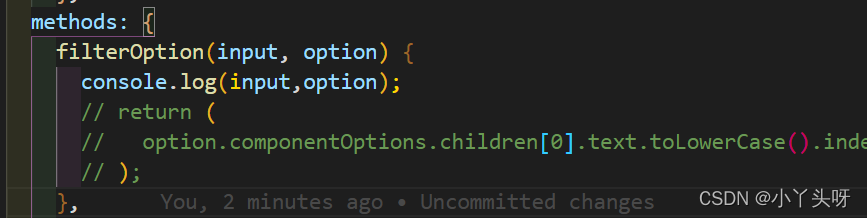 1.使用 ant design of vue 的 select 选择器功能里面的带搜索框 搜索功能时,报错2. 报错的原因2.1 使用的函数 filterOption 调用了字符串的方法 toLowerCase,但是选择器拿到的值为 undefined,就会出现该错误。2.2 打印该函数,来验证该问题控制台打印结果,select 选择器,确实取到的children 的text值是undefined