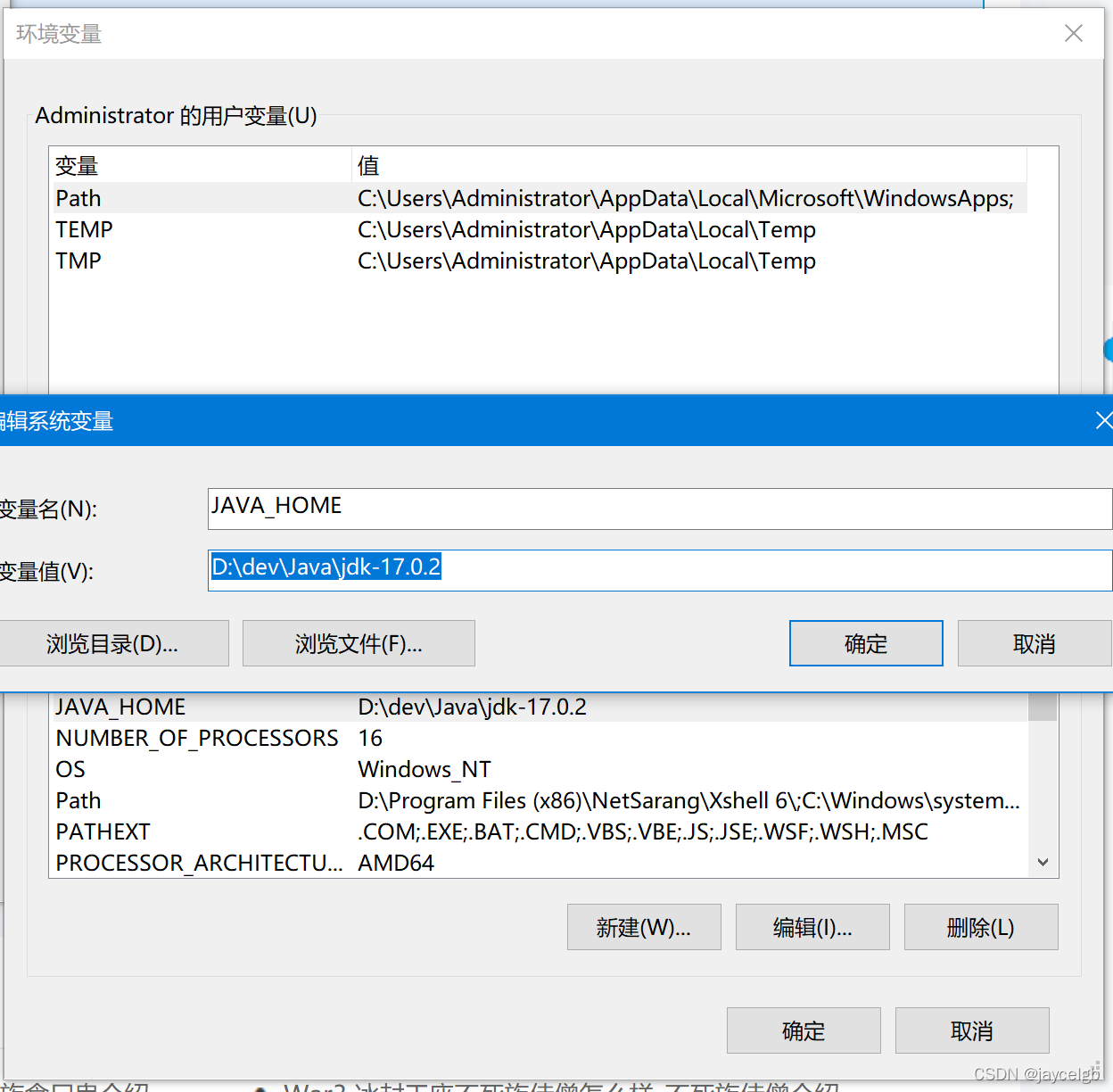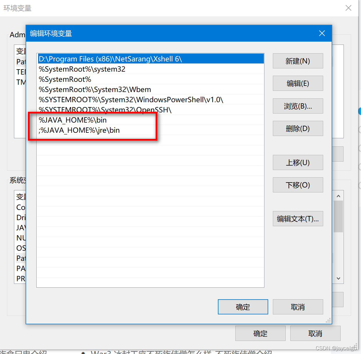 2)点击环境变量 ,新增JAVA_HOME环境变量,并边际PATH环境变量,将对应变量加入。