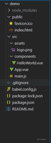 2.public文件夹:用于存放项目使用到的一些静态资源(图片)等,在最后webpack打包时会直接放入dist文件夹内。