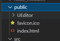 将解压的文件夹重命名为 UEditor 并移动到你项目的静态资源目录下,比如下面是一个由 Vue CLI(v3+)创建的项目,静态资源目录就是 public。