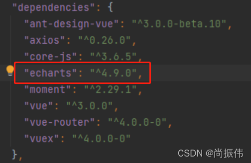 效果图目录一、安装echarts1、控制台使用命令进行安装2、在package.json中配置echarts3、在main.js中引用二、vue中使用echarts1、首先设置一个放置图标的dom节点2、在.vue文件的3、绘制仪表盘的方法4、在vue中需要用到的地方调用绘制图标的方法一、安装echarts1、控制台使用命令进行安装npm install echarts --save2、在pack