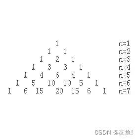 如图就是一个7层的杨辉三角,今天我们就用Java来编写这样一个杨辉三角。我还是把这个过程分为几个小的步骤来完成。