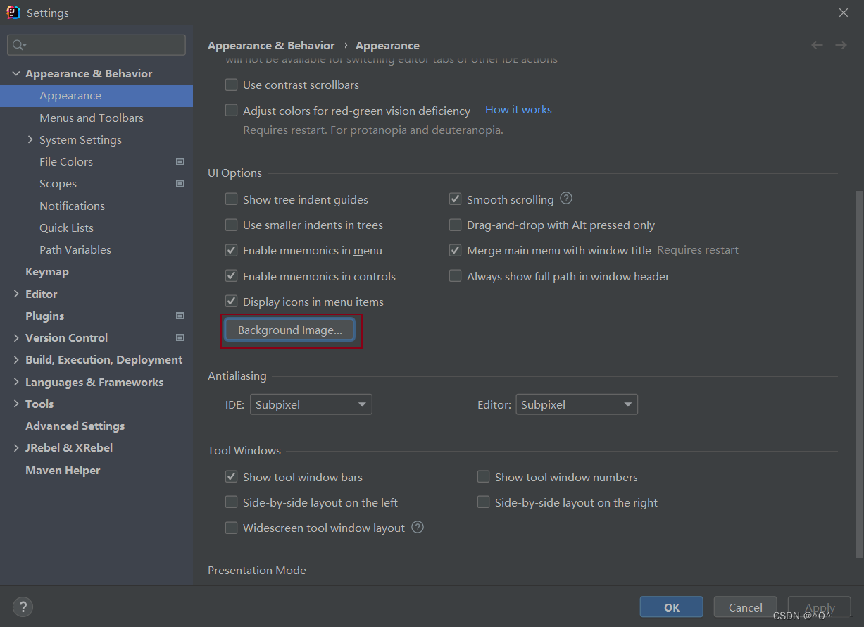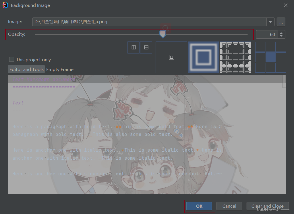3.背景图片设置好了之后,可以在 Opacity: 选择透明度,滑杆越往左越暗,越往右越亮 -> 点击,ok ;