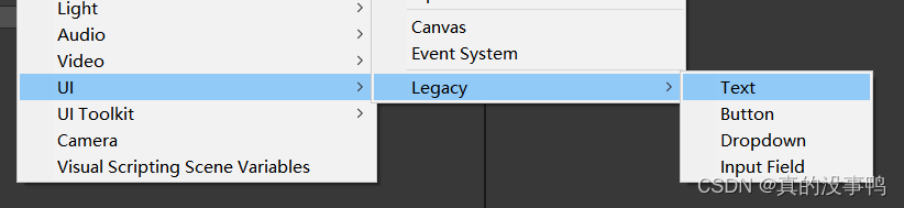 我们在Hierarchy界面添加一个Text,注意这个是旧的Text,不是TextMeshPro
