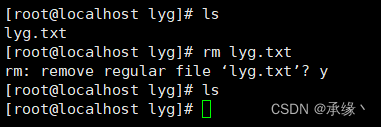 ③终端1上删除此lyg.txt文件: