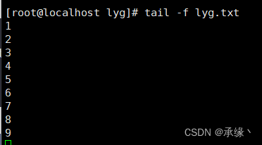 ②终端2另外一个终端一直tail -f(注意这个地方使用tailf不可行)这个文件,达到文件一直被tail进程占用的目的: