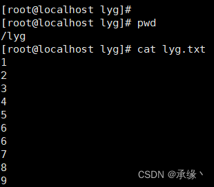 ①终端1创建一个文件lyg.txt:
