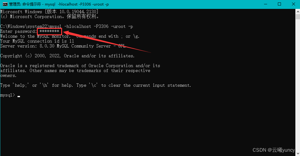 MySQL常用登录命令:mysql -h localhost -P 3306 -u root -proot